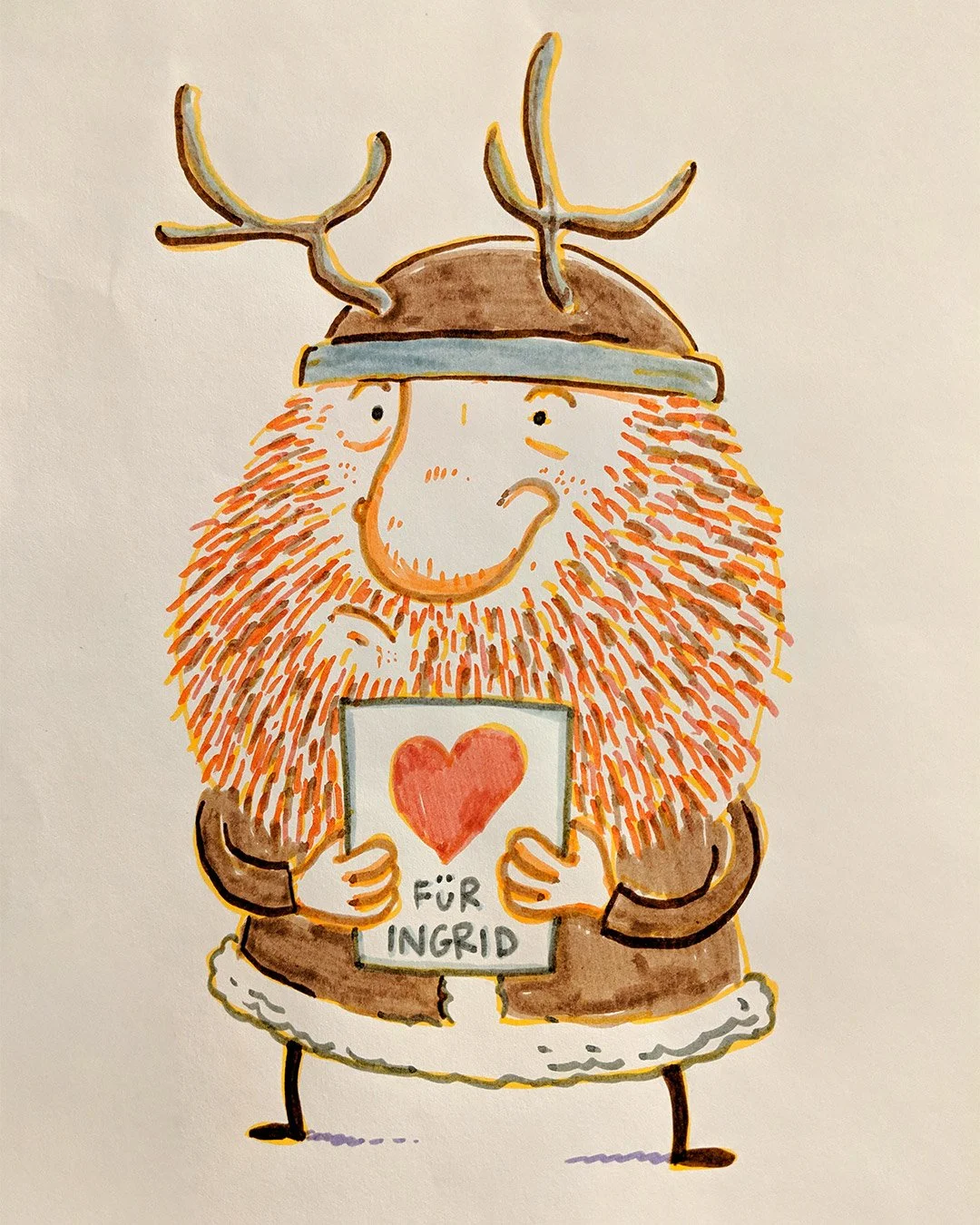 Thanks for having me! Drawing together with my daughter is one of our favorite things to do. One day, when she was 5, I was doodling a little Viking character and she was drawing hearts and rainbows (It’s still what she loves to draw). She looked over at what I was drawing and said, “I think that you should give him a heart.” So I gave him a little heart valentine. That drawing really got me thinking about this character’s story and who it was that was going to receive the valentine.
